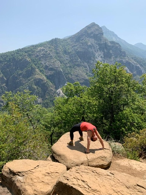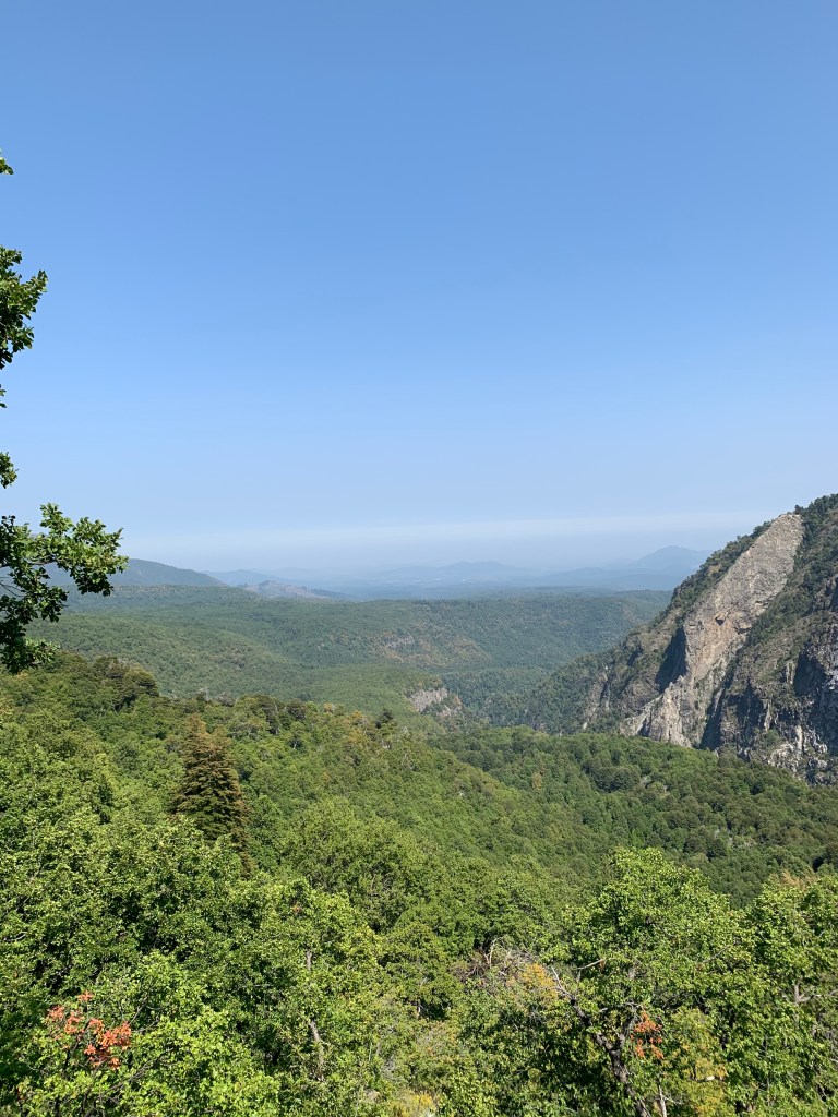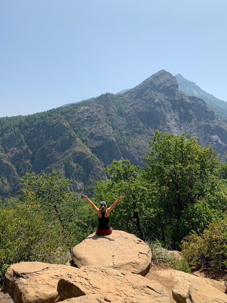We sat at this spot for a bit, taking in the beauty. Natalie asked us to each find a place to sit, to shut our eyes, and think about what we hear, what we feel, what we smell. Rarely do I take the time in life to “stop and smell the roses”, today I did. This is what I wrote in my journal on the mountain – I hear the wind, with the faint sounds of the leaves rustling in the background, and the clicking sound of an unknown insect. A breeze swept across my face, gently cooling me from the hike up The air had a clean, crisp smell. No pollution, no smells of the city, just fresh clean air. I feel free. I feel relaxed. I feel at peace.