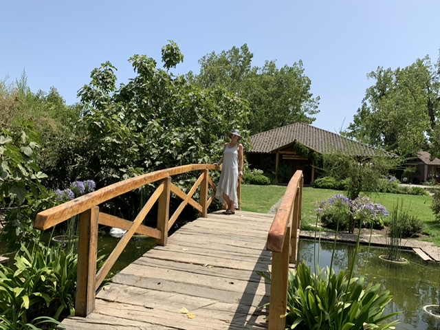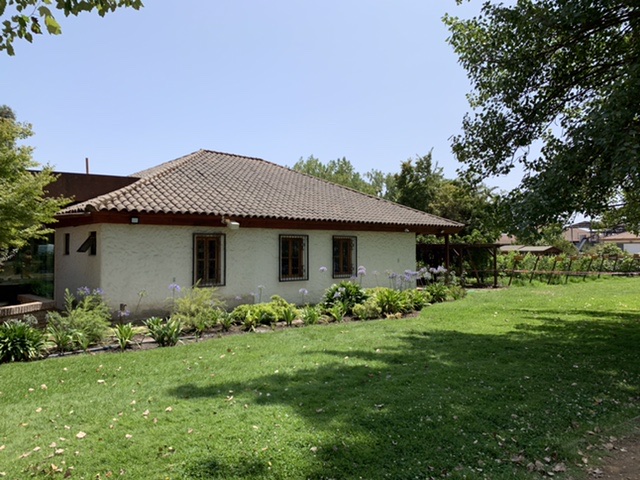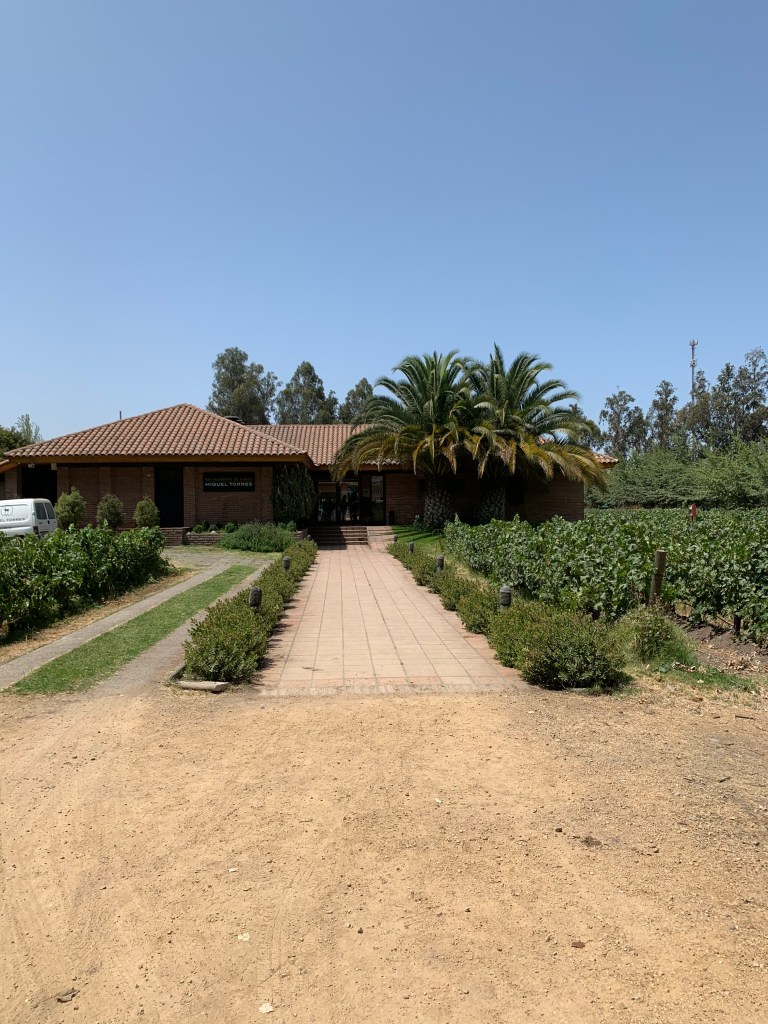We arrived at Miguel Torres in Valle de Curico. After giving our name at the security gate we drove down a short road to a quaint white building with beautiful flowers. This one stood out since the rest of the structures were more modern, with clean lines. Roosters and chickens run around the property freely. We were hoping to see a llama, since that is their logo, and there was an animal enclosure with a sign about Ruffina, but whoever Ruffina is, she never showed.