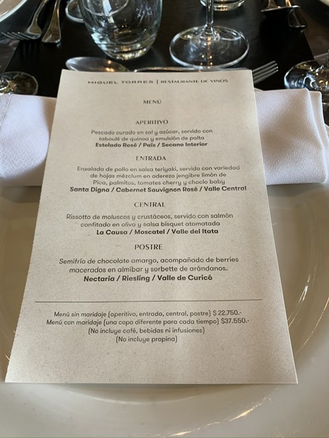 The first course was Pescado curado en sal y azucar, servido con taboule de quinoa y emulsion de palta, paired with Pais, Estelado Rose. The rose was sparkling, and we were all surprised at how good it was. None of us thought Chile would have a good rose.