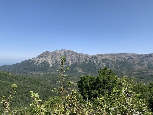We weren’t sure of our exact distance, we were told about 4 miles each way. I didn’t realize until I was downloading photos from the cloud for this post that at point 2, if we had paid attention, it said we still had 10 kilometers to go. The scenery was beautiful, the weather was cool, there was not a cloud in the sky, and on the way up we only saw two other hikers – one on a mountain bike, with a woman following behind.