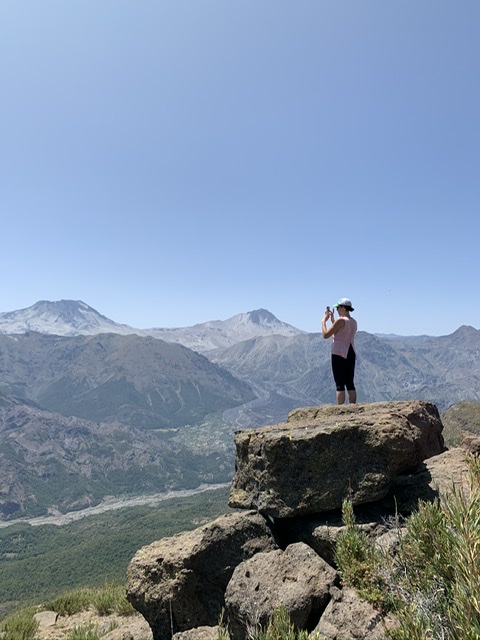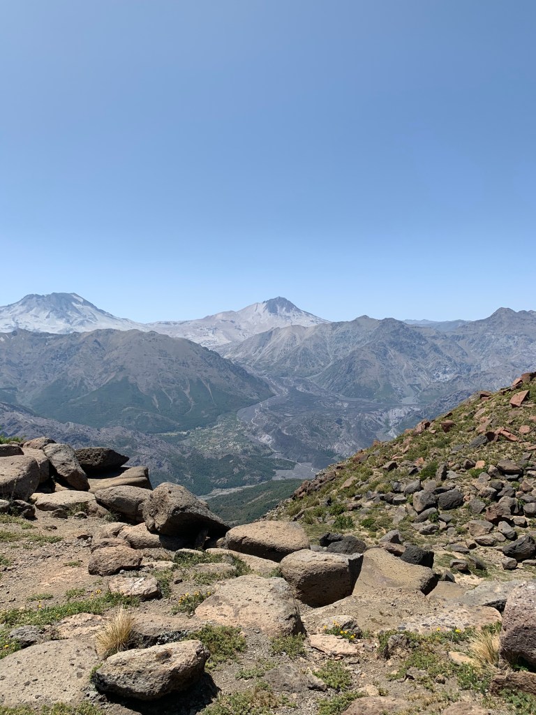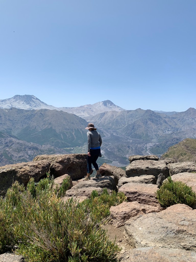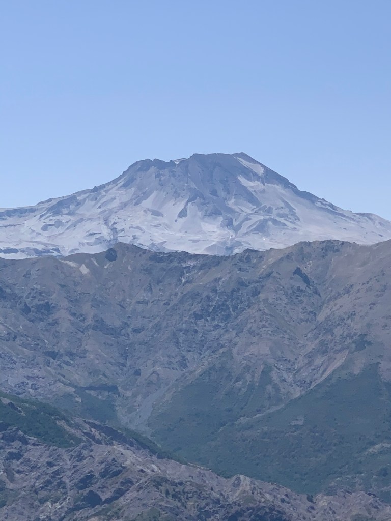 We climbed up the final large boulders, and when I got to the top all I could say was “mother f’er”. Then I looked around, and was amazed. The beauty of the volcanos across the valley were spectacular. They were grey, covered in volcanic ash. There were no birds, no animals, it was quiet, peaceful. Three other climbers came up, but left quickly, and for a short time we had this mountain top to ourselves. Jill said she felt empowered after making such a climb. When she said that, my eyes welled up a bit. I too felt empowered. Just 30 minutes ago I didn’t think I had it in me to finish, yet here I was. I did it!