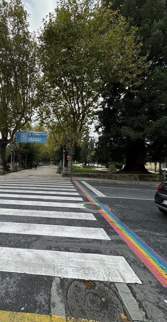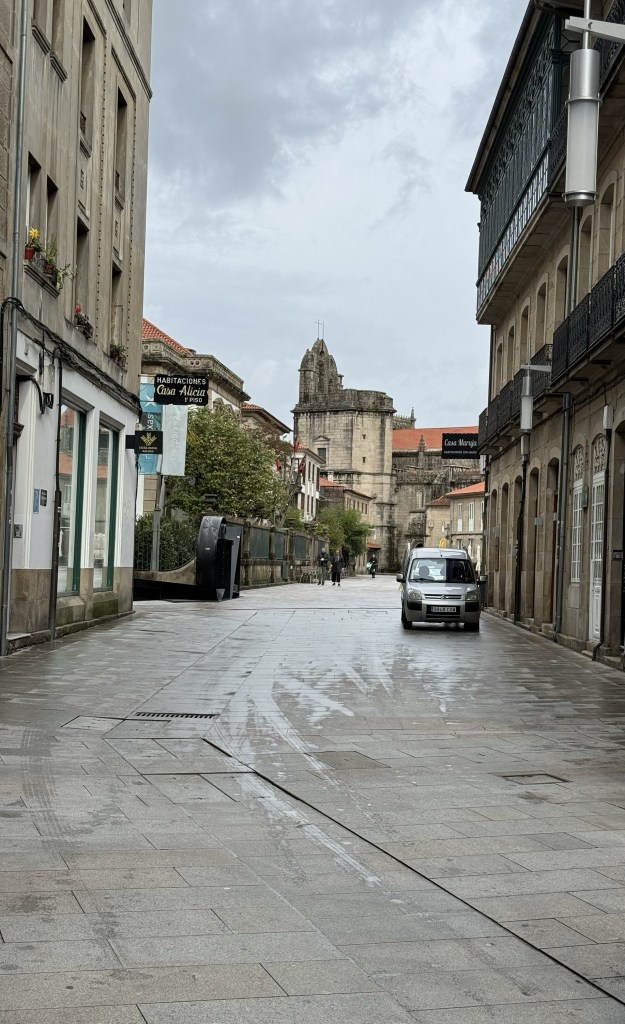 This morning we started our journey to Spain. Our next destination is Santiago de Compostela, the end of the Camino pilgrimage. It’s only a few hours north of Porto. When you cross the border from Portugal into Spain you lose an hour, although we only headed north and did not seem to cross any major longitudinal lines.