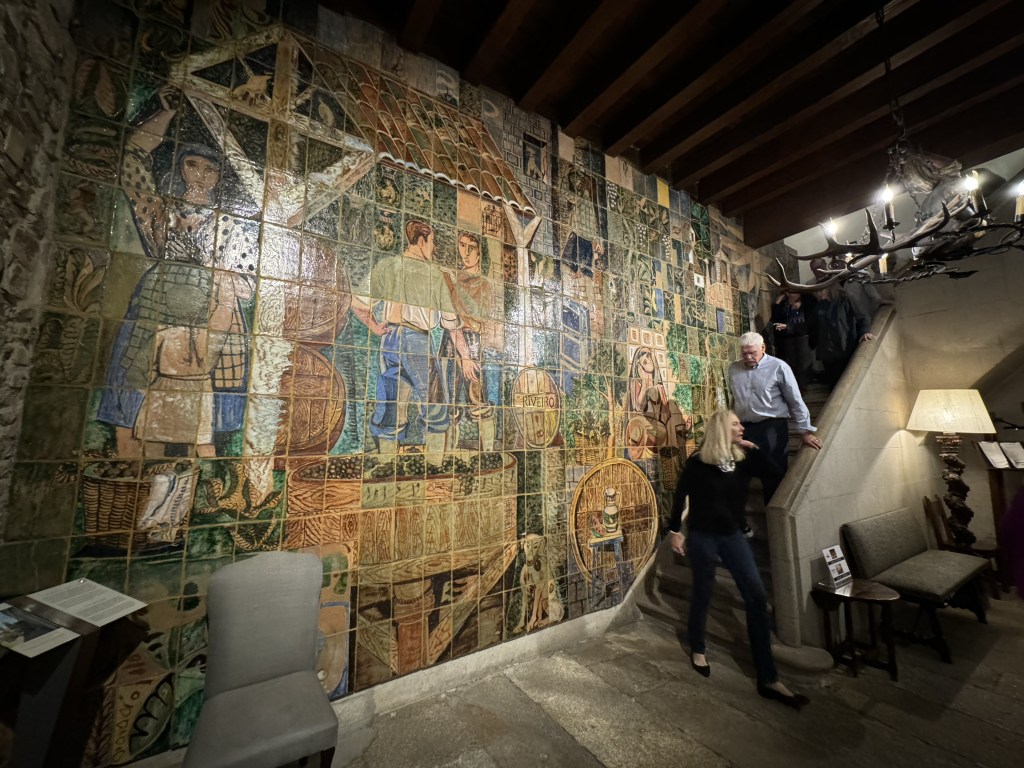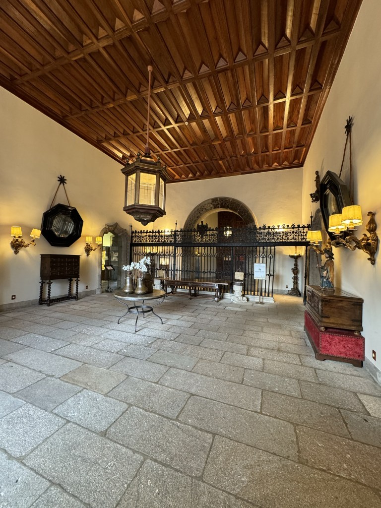 We arrived at Parador de Santiago de Compostela, our home for the next two nights. It is a 15th century building that was used as a hospital and inn for the pilgrims, and is considered one of the oldest hotels in Spain. It was built by King Ferdinand and Queen Isabella in 1486. The architecture was amazing, along with the beautiful woodwork throughout the building. Being built with stone it was chilly in some of the rooms, and the heat didn’t come on until evening. It is the perfect place to stay as a tourist or pilgrim. If you are not familiar with the Camino Pilgrimage, I suggest you watch the movie, The Way, with Martin Sheen and Emilio Estevez. I’m thinking when I retire, I may hit the trail for a month. Who will join me?
