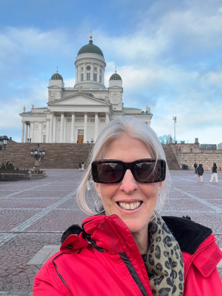 After the tour, Laura and I circled back around the city to walk through the food market, and settled into the iconic Fazer cafe which originally opened in 1891. It’s located across from Hotel Kamp. We both enjoyed a traditional Finnish dish, a shrimp sandwich. Then it was back to the train station to board the Santa Express. Next stop – Rovaniemi and Santa Claus Village!