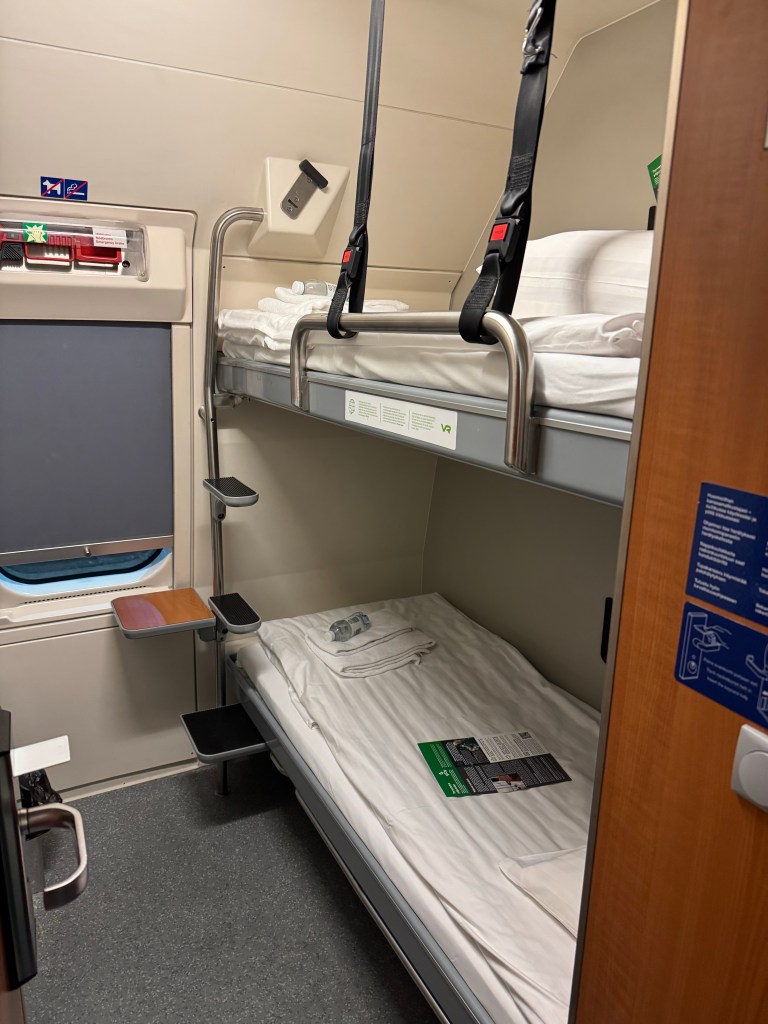 After touring Helsinki, Laura and I made our way to Helsinki Central Station and boarded the Santa Claus Express overnight train. We left at 19:29 and we were set to arrive in Rovaniemi at 7:20. We booked a second floor sleeper car so we would have our own bathroom. The cabin was tiny, and the bathroom was like an airplane bathroom. I quickly settled on my bed, ate a sandwich I brought on board, caught up on Facebook and Instagram, wrote about Helsinki and got my things ready for the next day. Laura headed to the restaurant car and surprisingly had a good salad and some wine. I had no issue sleeping on the train, it wasn’t a deep sleep, but the gentle sway rocked me to sleep, and for me, the cabin temperature was perfect. Laura was not as successful on the upper bunk.
