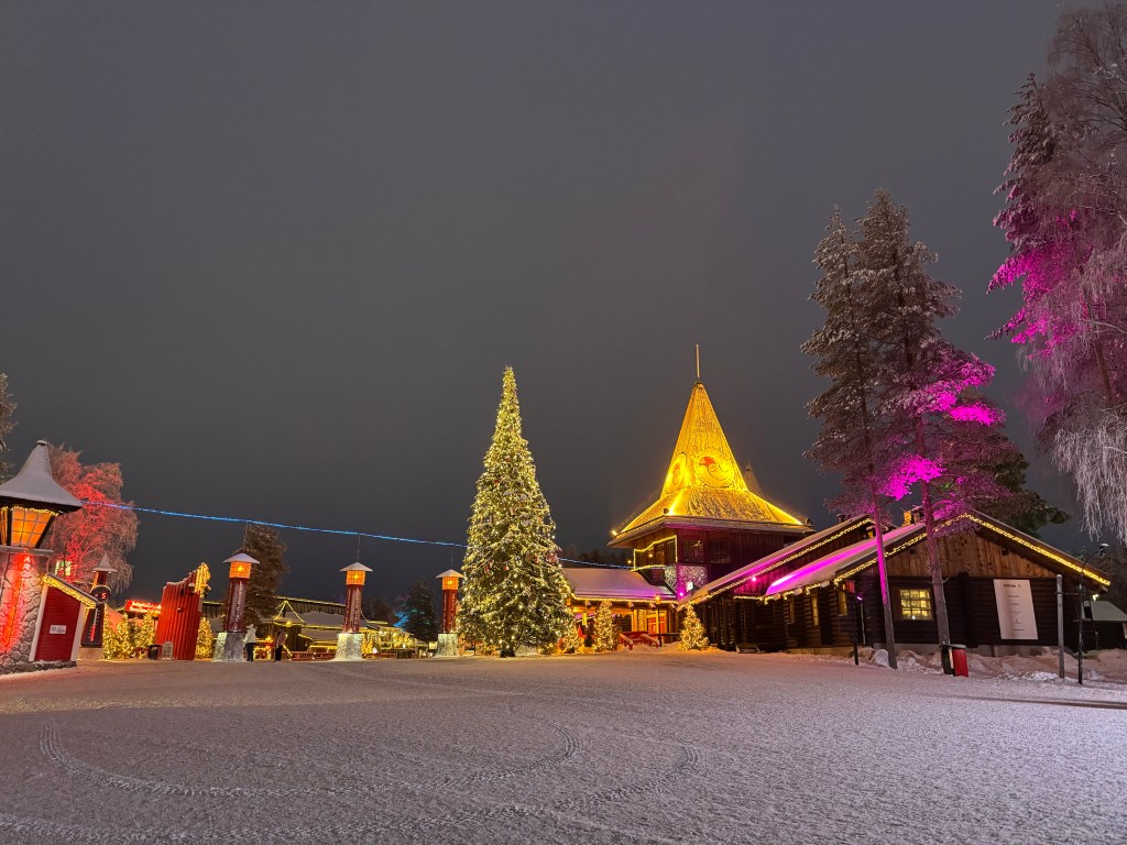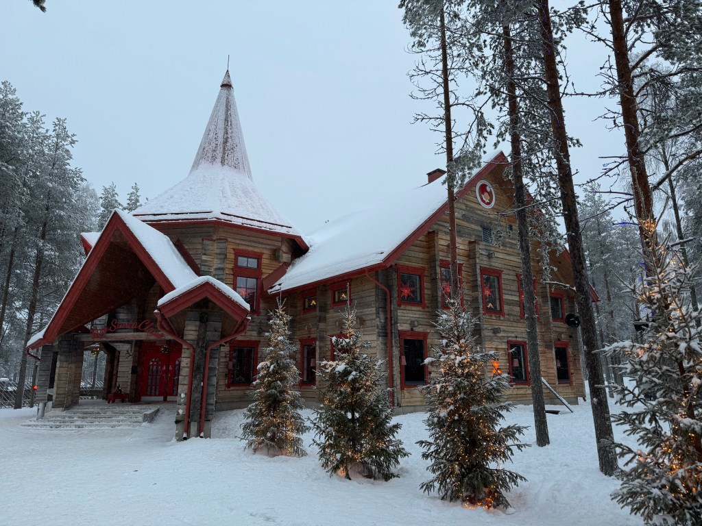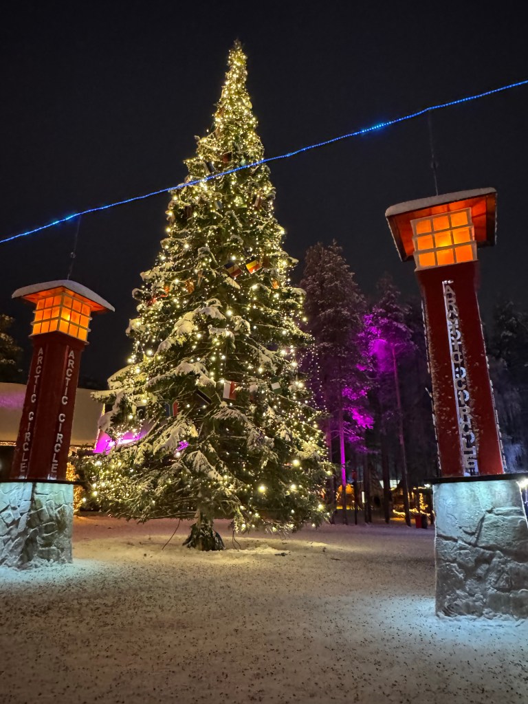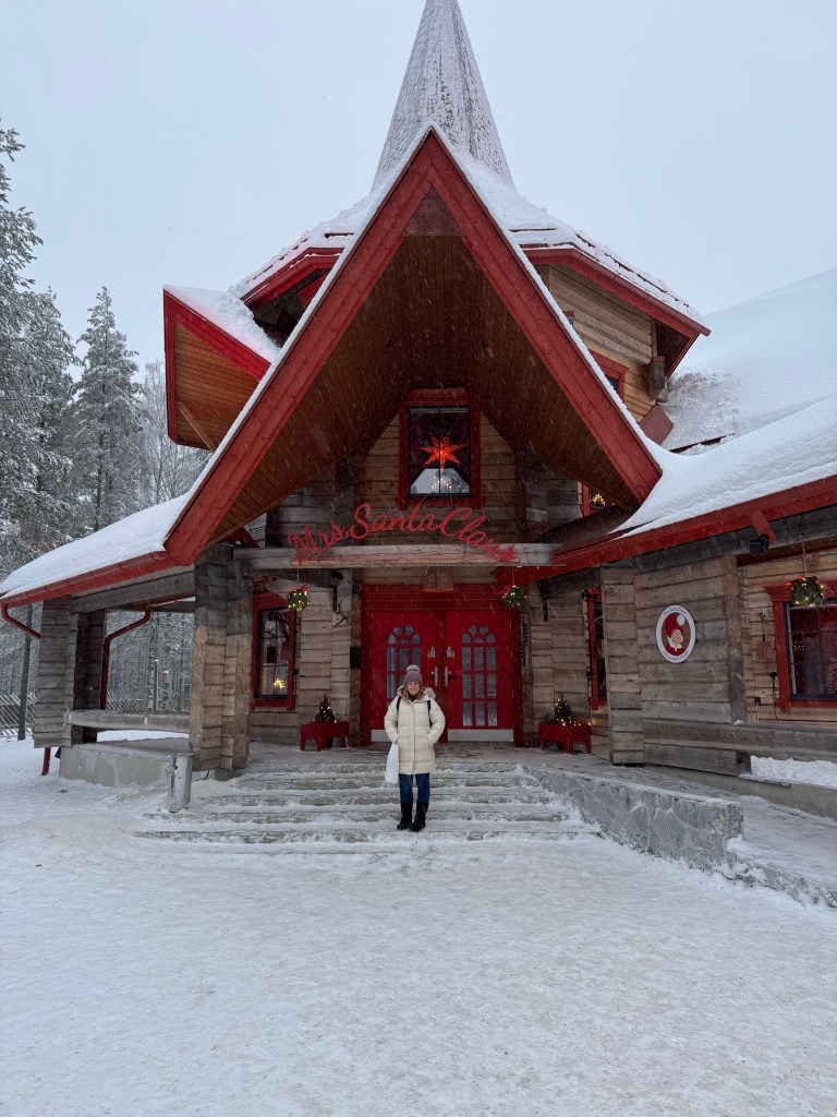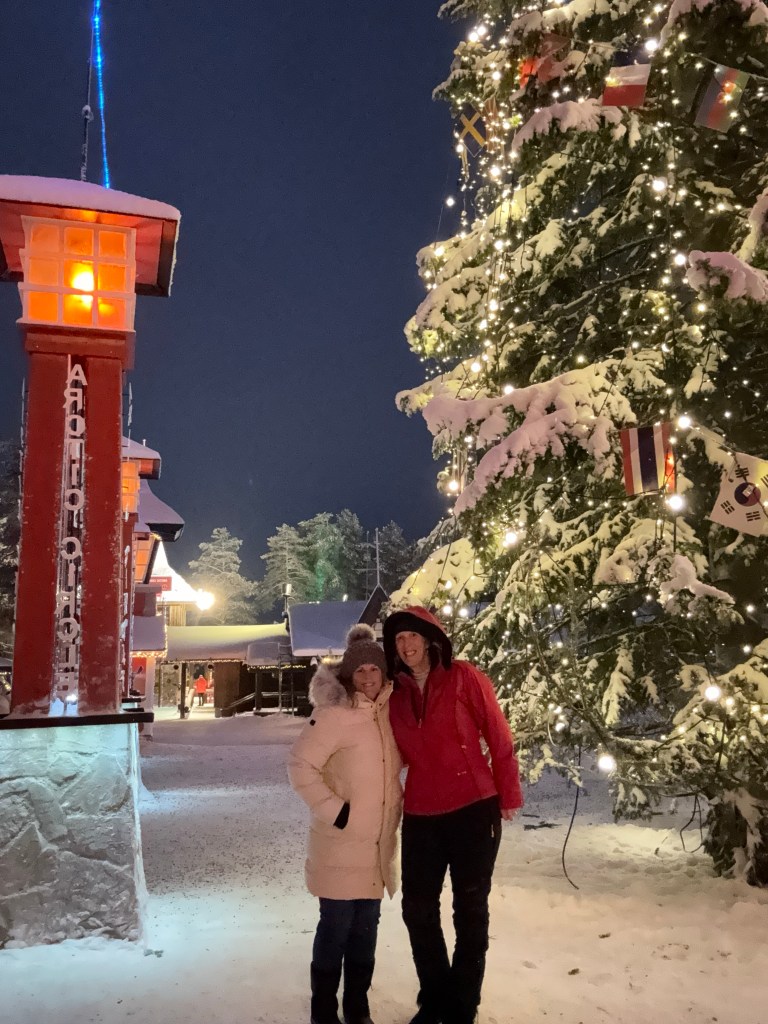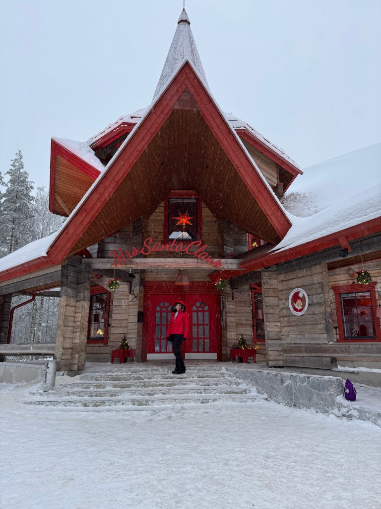 For a few years I have seen countless posts about Santa Claus Village on Instagram. My love for Christmas was inherited from my mom. She always made Christmas magical. She filled our home with the aroma of cookies, made countless pecan tassies, the tree was stunning and she moved the decorations around for days until she thought it was just right, and she proudly displayed her beloved Christmas Village with pieces on every flat surface in the living room. So naturally going to Rovaniemi, Finland and meeting Santa quickly became a bucket list item. Today was the day – time to check off another bucket list item.
