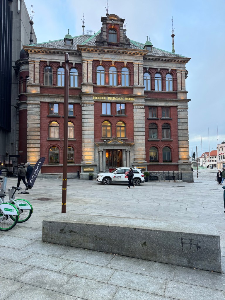 After a quick flight from Tromso we arrived in Bergen. We used the light rail to travel to the city center. It was easy, we just followed the signs for the light rail, rode down the escalator, purchased a ticket for about $11, and boarded the train. After a 45-minute ride we were in the center of Bergen.