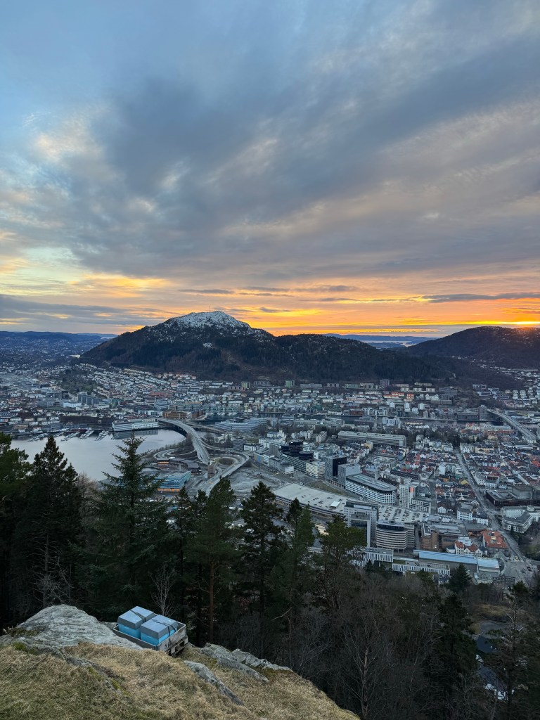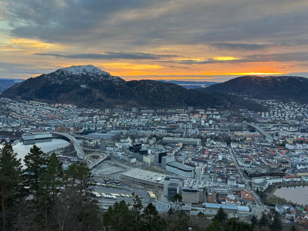After our tour we took advantage of the remaining minutes before sunset and headed for the funicular called Floibanen. It was freezing up above the city as the wind was blowing and the sun was setting, but the views were spectacular.