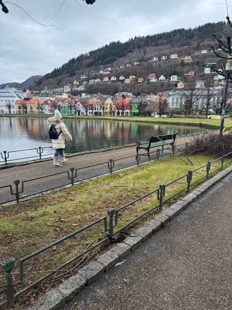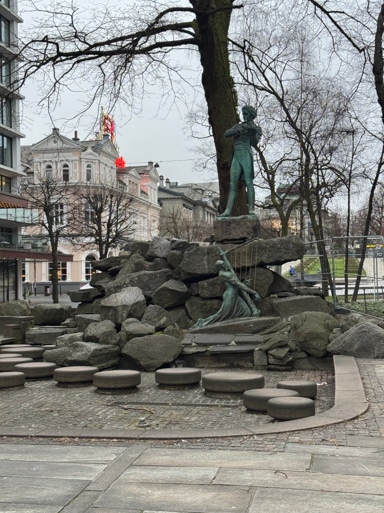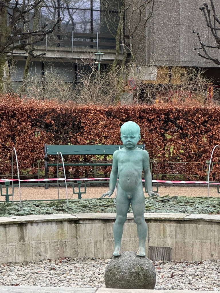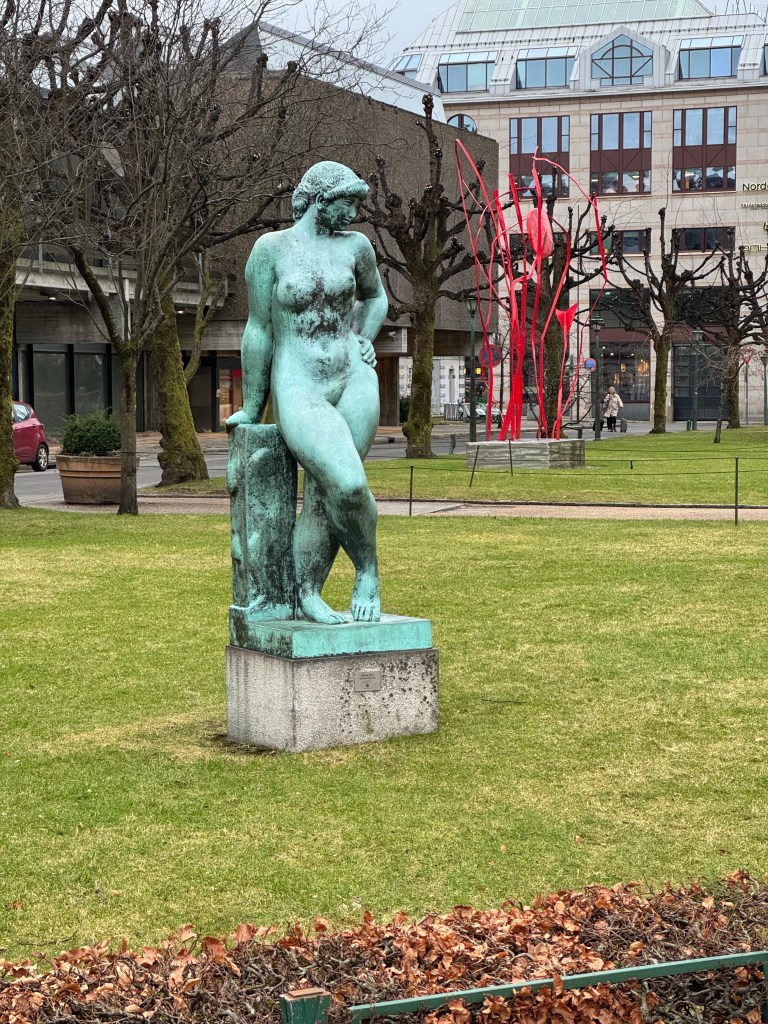 The next morning, we had a couple hours to kill, so we headed out for a walk. We ventured just south of our hotel to the Byparken area. The Byparken has one of the most famous statues in Bergen, the Crying Boy, but to me he looked angry. The park looks like a great area to sit, and people watch, or just to take a break from walking around. It has a nice pond and a number of different works of art, not just “the boy”.
