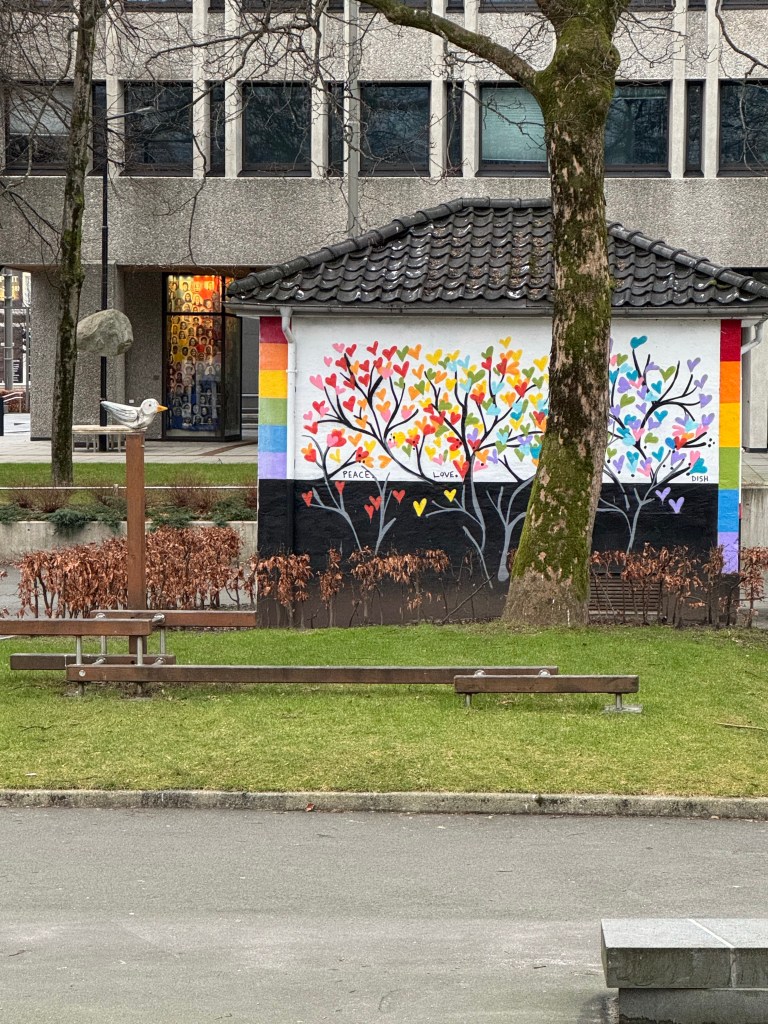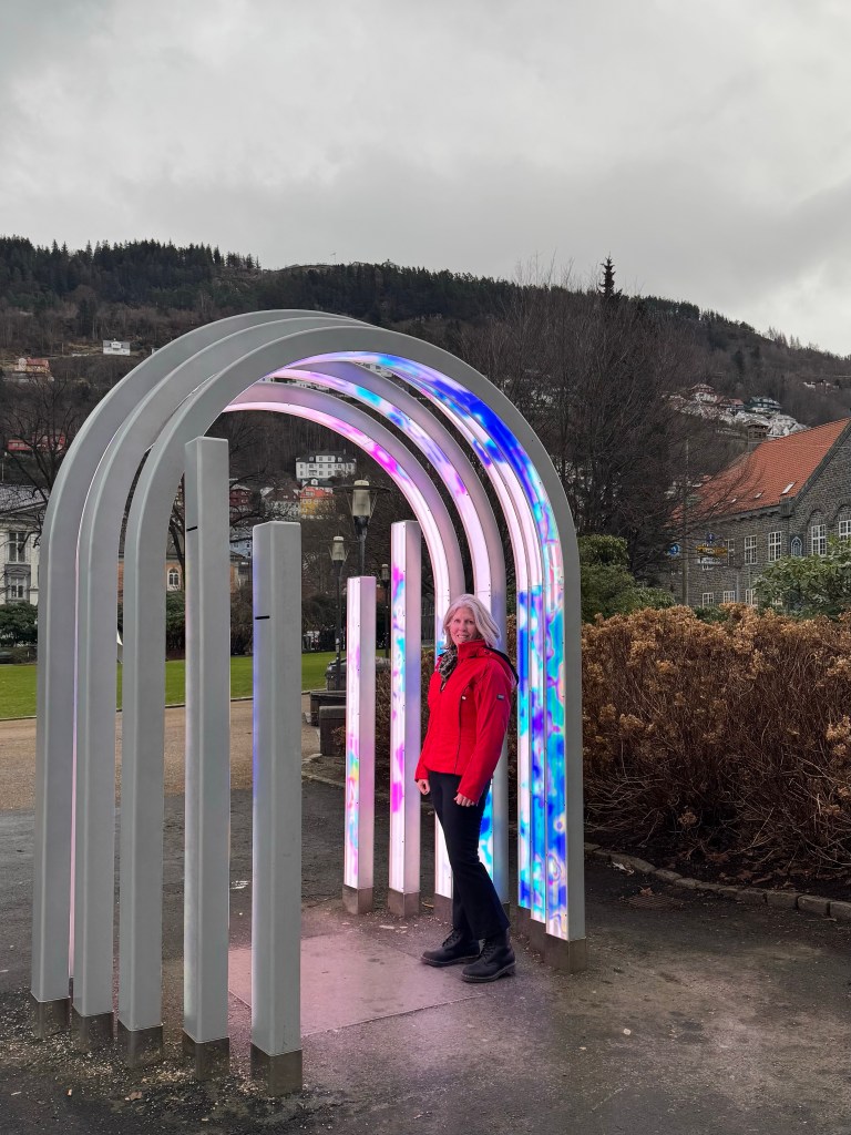 Bergen is so much more than just the waterfront area. It appears as though each neighborhood has its own character with statues, murals on buildings, and the architecture is just beautiful. Laura voted Bergen her favorite city on this trip. We heard from those in Bergen that Oslo is a “dump” compared to Bergen, but we also heard that people in Bergen feel their city is the most beautiful in Norway. It is beautiful, but there was something about Tromso that I truly enjoyed, so I’m not quite ready to vote Bergen #1, but I do know that 24-hours was not enough time to explore this beautiful city.