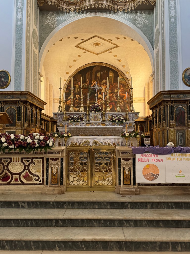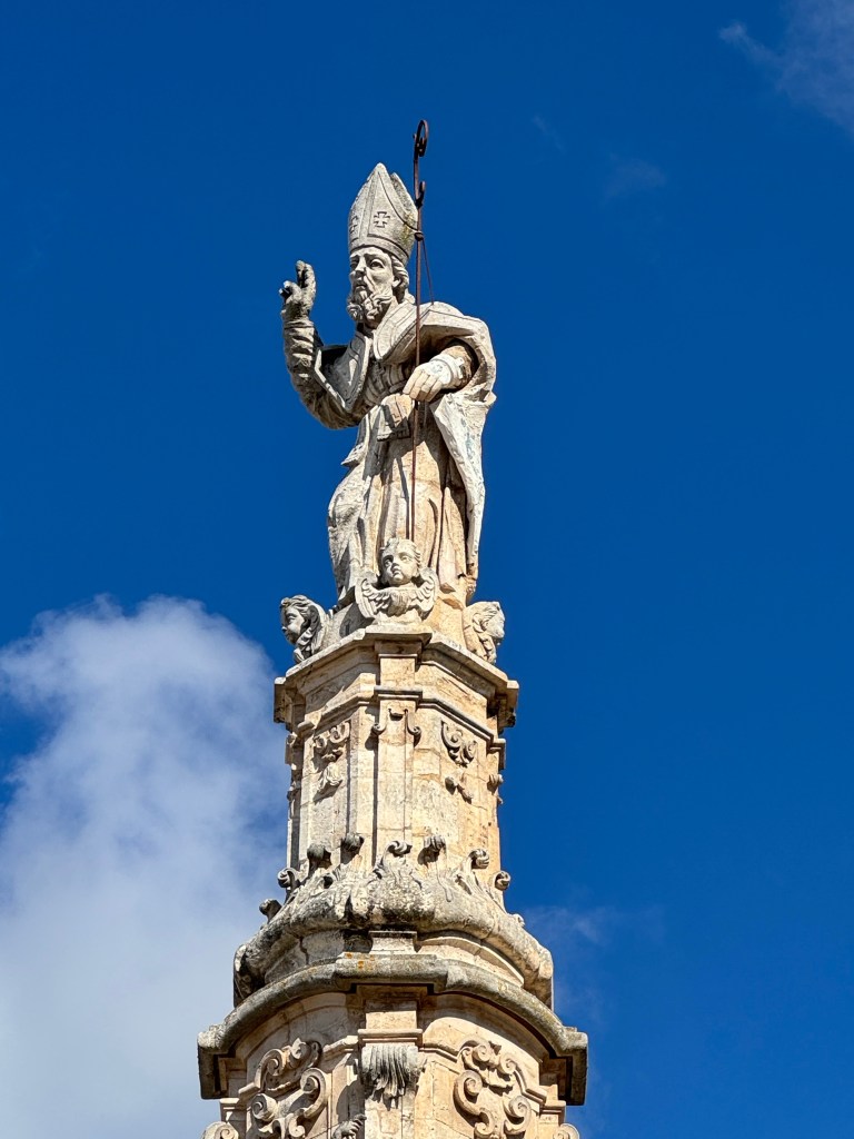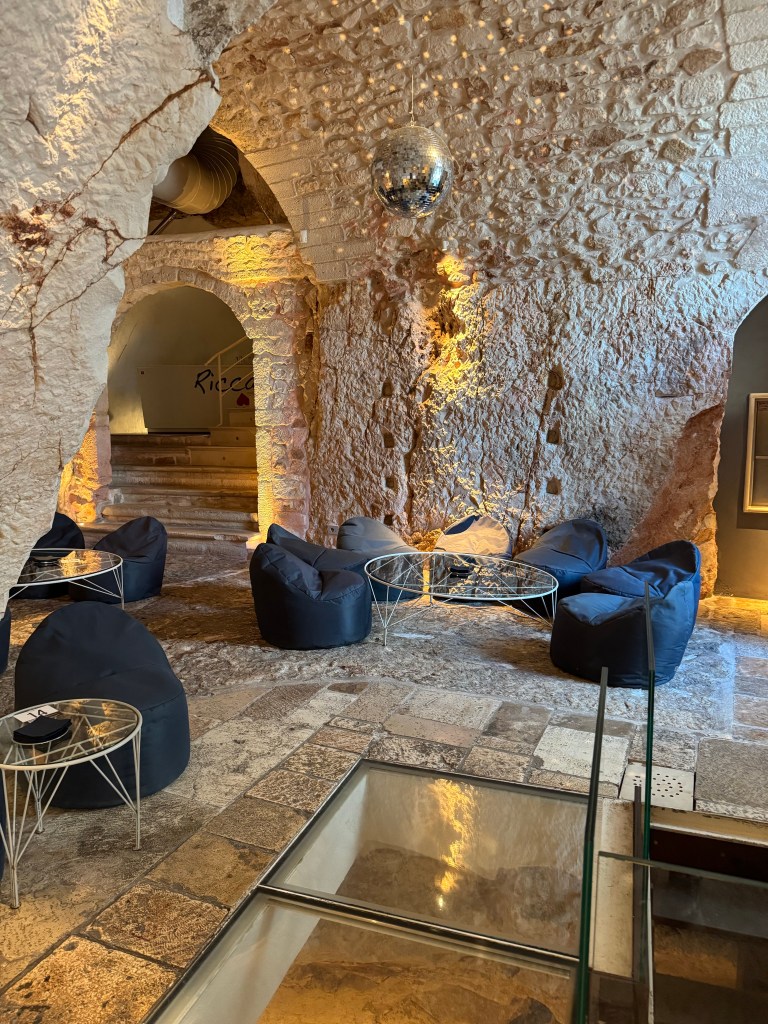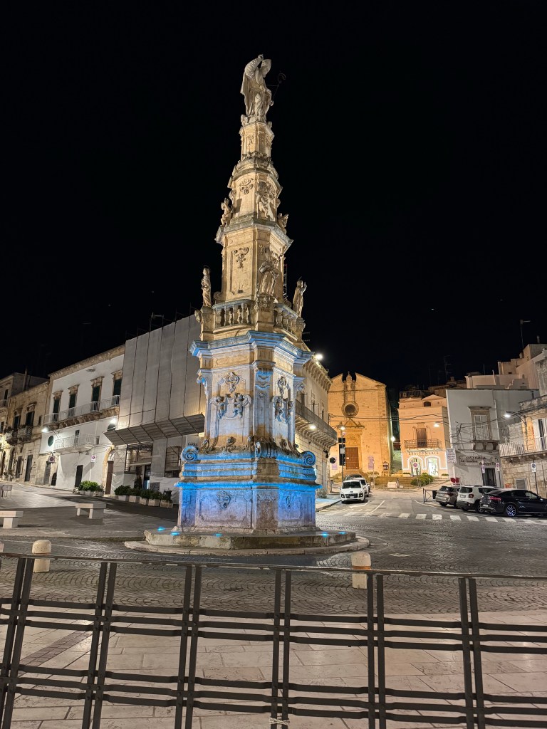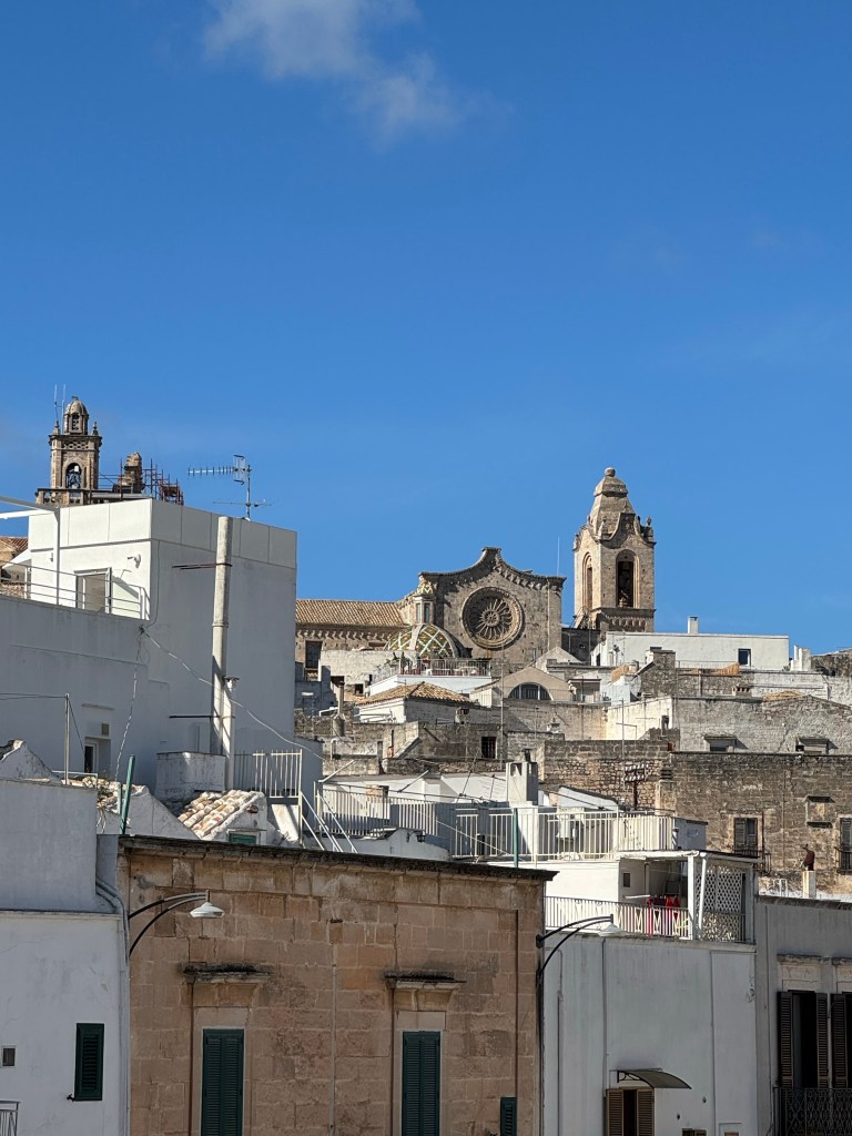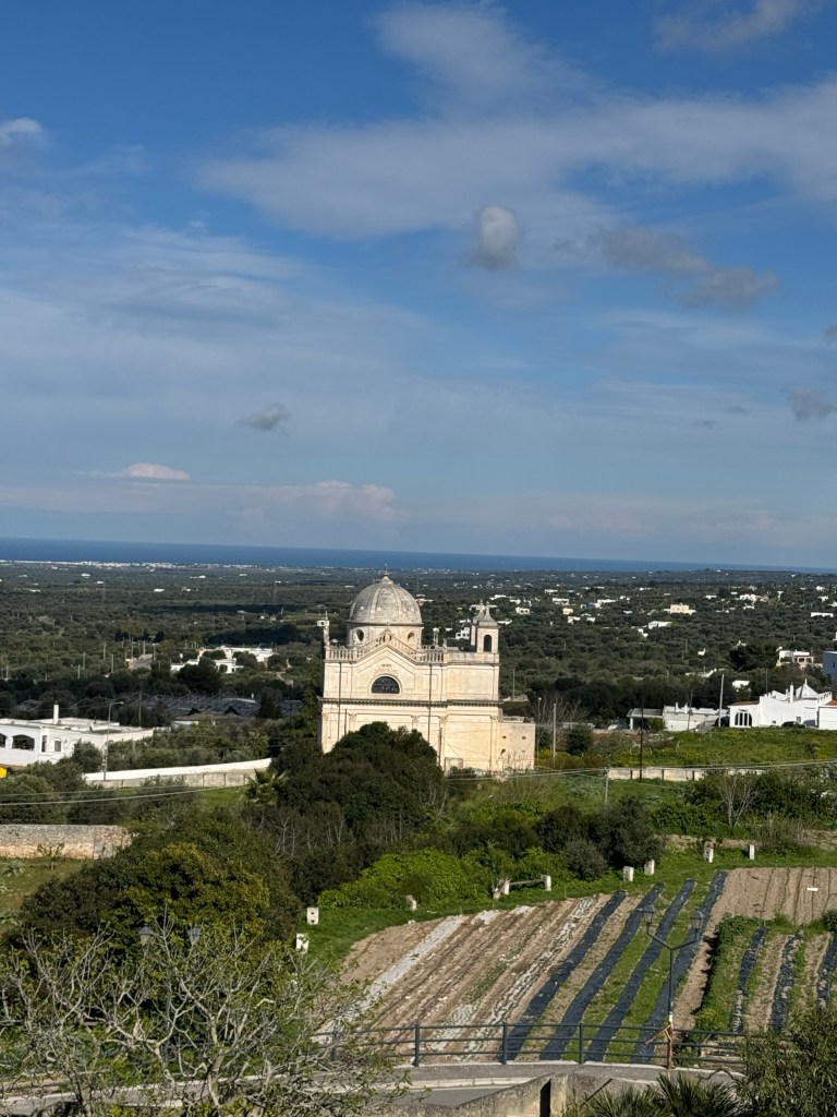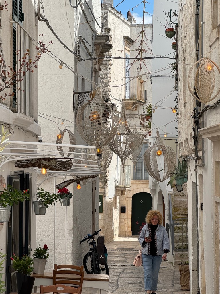 From Cisternino we drove to Ostuni, “La Citta Bianca” or “The White City”, aptly named due to the white walls around the city and the white painted buildings within the walls. If I were to stay overnight in one of these towns, this is one I’d pick, along with Monopoli. It was more lively than Cisternino, and we passed so many cafes, bars and restaurants. Wearing shoes with good treads is a must as the cobblestones are slick, and it is very hilly. There is not a lot of traffic, but you do need to keep a look out on some of the “main roads” that can actually fit a car. There is a large piazza in the center with many cafes, but I recommend you wander the streets away from the center and see what hidden gem you find for a sweet treat or beverage. As you climb the streets you will come to the large Duomo di Santa Maria Assunta (aka Ostuni Cathedral). We were told much of the inside is not the original and it is a shame they have covered the large flower window in the front so the light does not shine in the church. Across from the cathedral you will see the beautiful Arco Scopa, a covered walkway connecting the Bishop’s Palace and the seminary. We enjoyed cocktails in a fun, modern bar, Riccardo Caffe, and had dinner at Casa San Giacomo where Madonna has celebrated two of her birthdays.