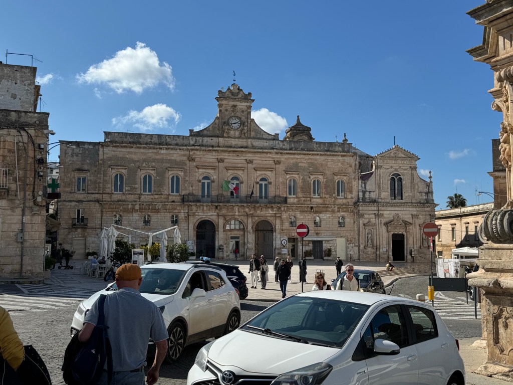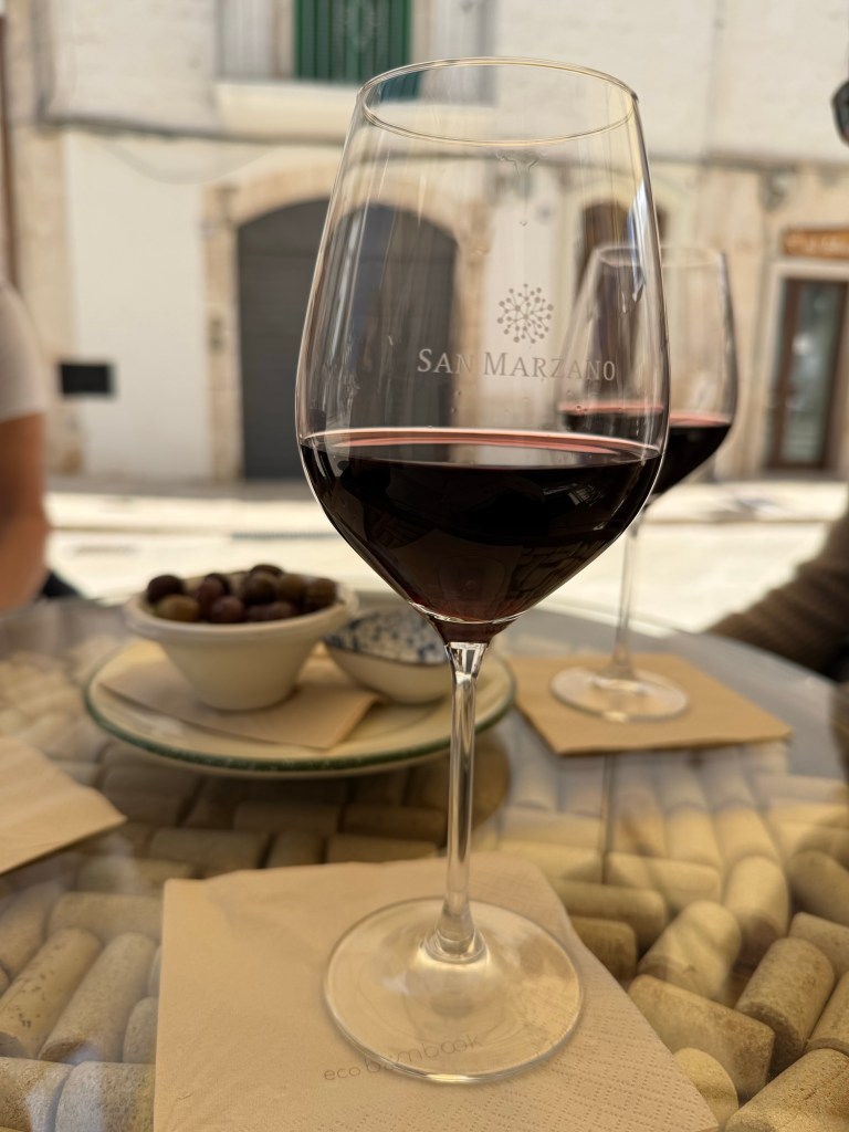 Our first excursion was to Cisternino. This town is said to have more locals than tourists, its heart is the Piazza Vittorio Emanuele II. From there you can wander the streets in any direction. There is a picturesque view point just across from the Chiesa di San Nicola Patara to view the surrounding countryside. A couple of us broke away from the group to enjoy a glass of wine at a quiet bar. We sat outside, the street was deserted and it was perfect.