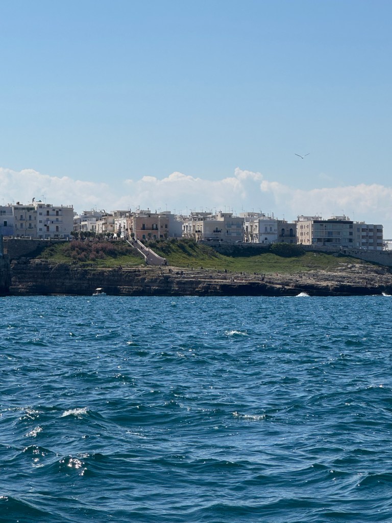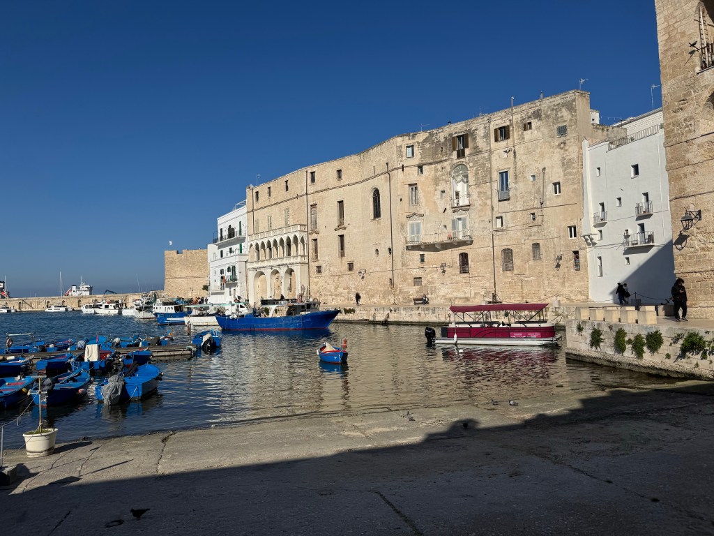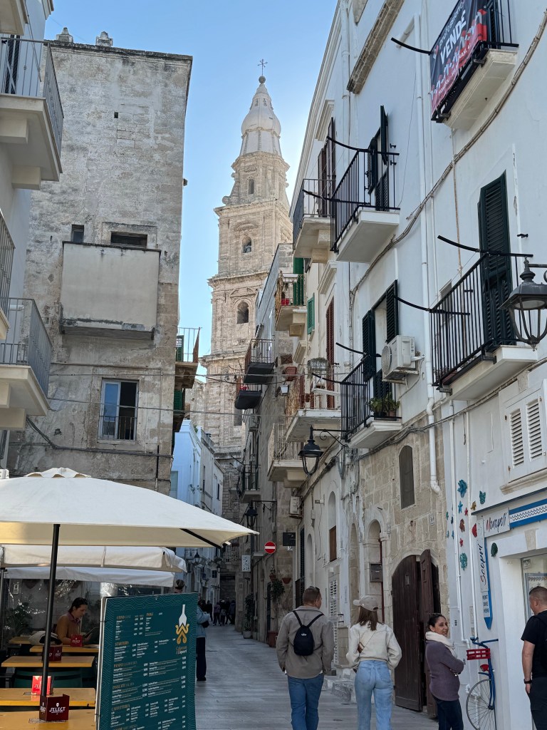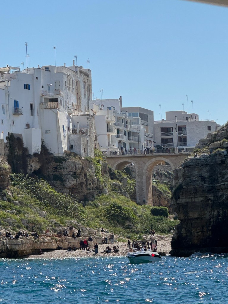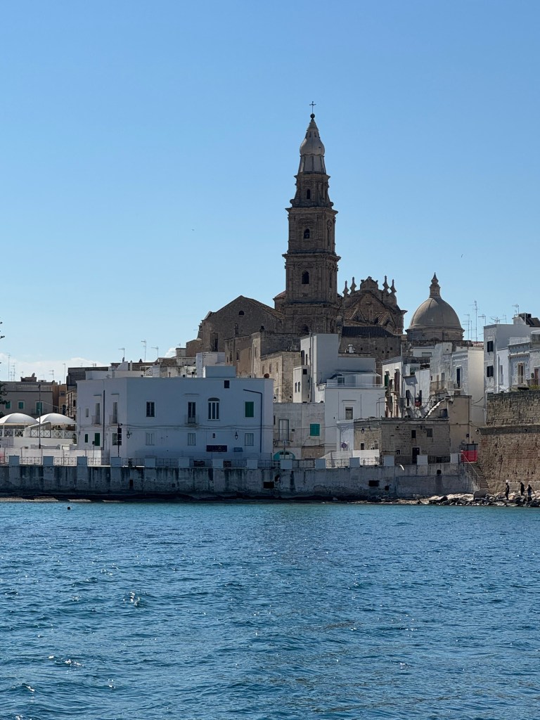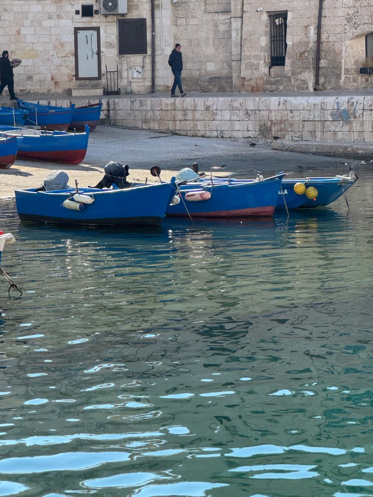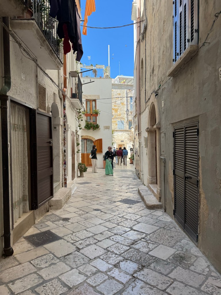 The following day our first stop was Polignano a Mare. Some of you may recognize this town due to the many Instagram posts of the famous cave restaurant Ristorante Grotta Palazzese. We did not see this restaurant from above, but we did pass by it on our catamaran ride to Monopoli and it looks stunning! The streets were very busy given it was a Saturday; I can’t image what it would be like in the summer. We walked into the town center, wandered the narrow streets, and came to an area where they do cliff diving. Although no one was diving, we did have a wonderful view of the beach below and the pristine water. We didn’t have much time to explore as we had to head to the marina to catch our private catamarans that would take us to Monopoli.