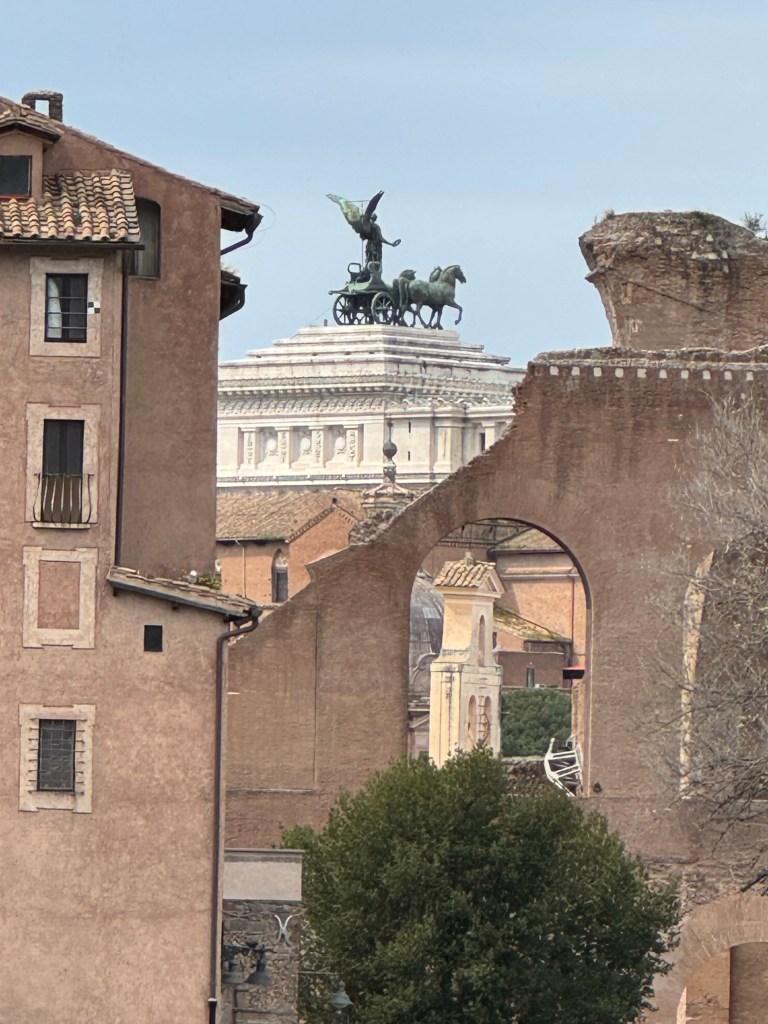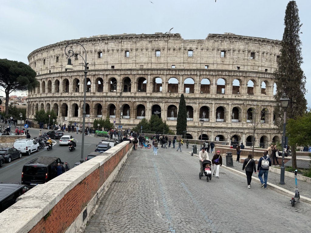 I did not plan an overly busy itinerary for my two days. I had two timed entry events, the Colosseum and the Borghese Gallery; hoping to add visits to Trevi Fountain and the Spanish Steps. Any other sites would be a bonus. Given it is the Jubilee, I planned to stay away from the Vatican. I thought I may walk through the doors of one of the churches the Pope opened on December 24th, Basilica Santa Maria Maggiore, but that did not happen. Now given the Pope’s death, and this church was his chosen burial site, I’m kicking myself as it was a couple blocks from my hotel.