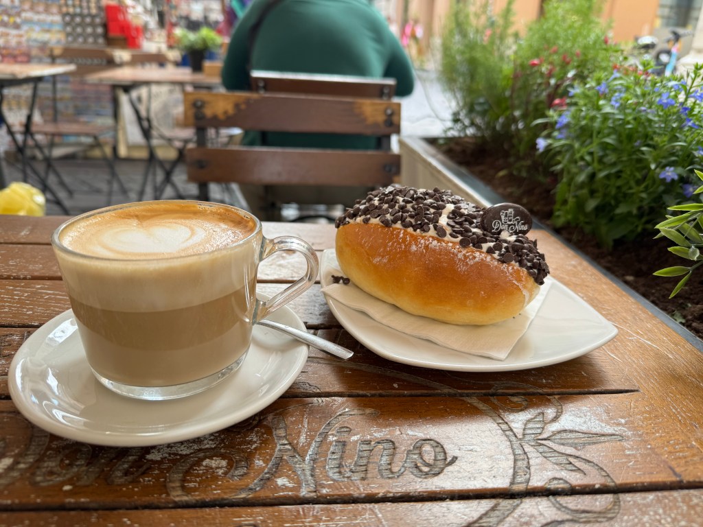The Pantheon is one of the best-preserved buildings from ancient roman times. They say the domed roof is a testament to the genius of the Roman architects of that time. I didn’t have a ticket to go in, and the lines were already forming before opening, so I walked up as close as I could to the entryway to get a glimpse inside. Okay, add this to the list of buildings to return to one day! From there I easily made my way to Piazza Navona and walked around the square admiring the fountains and continued to enjoy having another beautiful site virtually empty. Next on the agenda, breakfast! I was starving and needed coffee. I decided to head back towards Trevi Fountain as I had seen a number of cafes in the area.