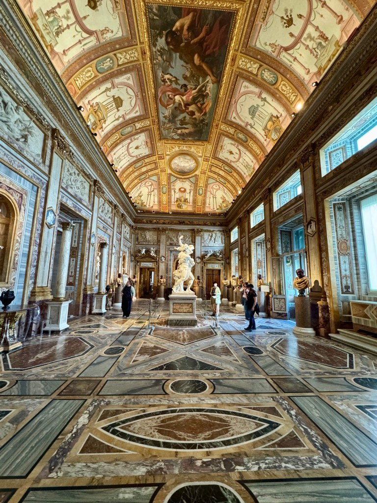 After I freshened up, I decided to head to Borghese Gallery early and walk the gardens that surround it. I wasn’t sure what to expect at the gallery or the gardens, but I wanted something relaxing in the afternoon. I am so happy I went. The gardens are beautiful, and I have to imagine in the summer they provide a nice place to rest and cool off from the heat. You can just wander the various paths and sit on the benches under the trees. The Borghese Gallery was excellent. I highly recommend you visit there when in Rome. The works of art were beautiful, and with the timed entries with 2 hours to explore, it was the perfect amount of time, and it was not very crowded. There are quite a few steps to the upper level, and I didn’t notice an elevator, so if you can’t do steps, you may want to find out if there is a way to the upper level, you don’t want to miss those rooms.